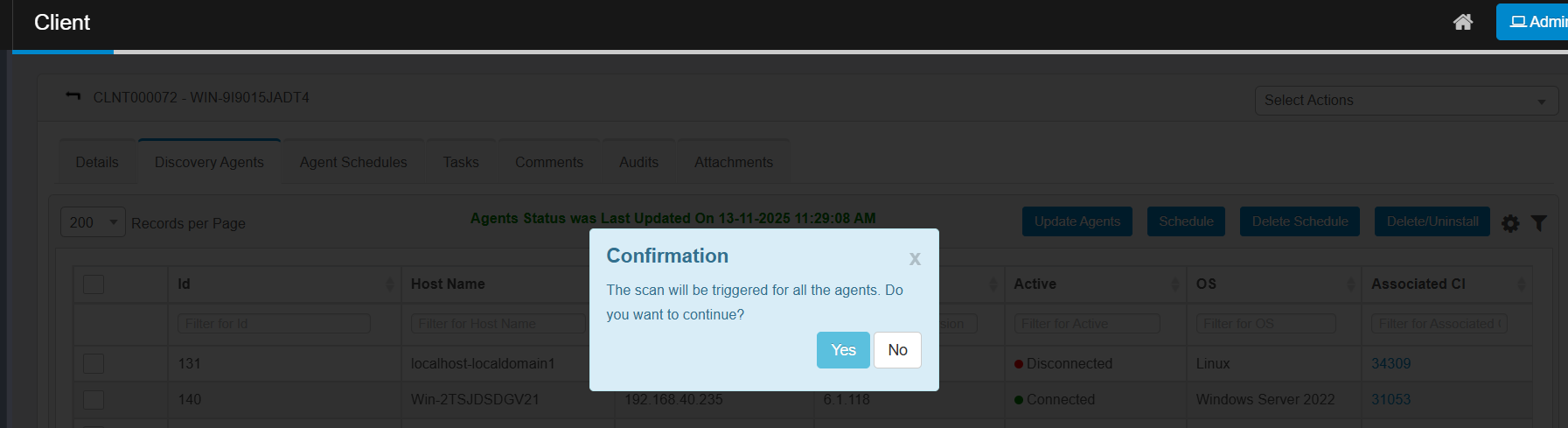 In the main window, click Admin > Discovery > Client. |