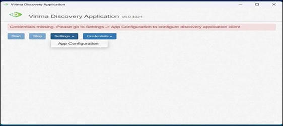 Click Start to begin discovery Virima Discovery Application.