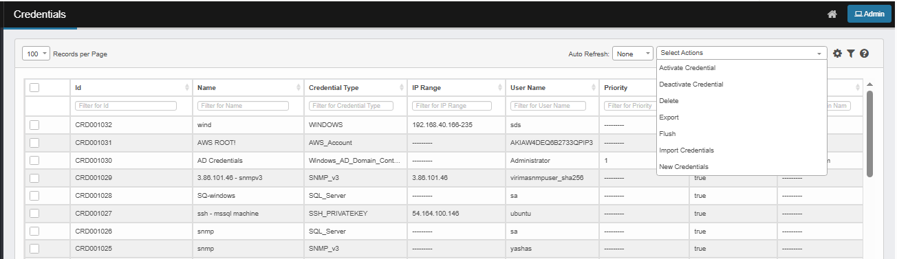 In the main window, click Admin > Discovery > Credentials. The Credentials window displays.