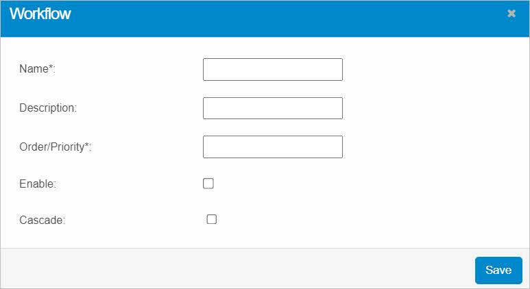 Save opens the Workflow dialog box in which you enter the details for the workflow.
