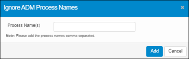 | 1. | In the main window, click Admin > Discovery > Ignore ADM Process. The Ignore AD Process Names dialog box displays. |
