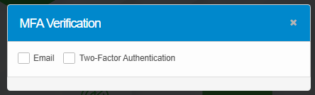 When enabled, upon trying to log in, the user receives an email verification screen and can select to use either Email or Two-Factor Authentication.