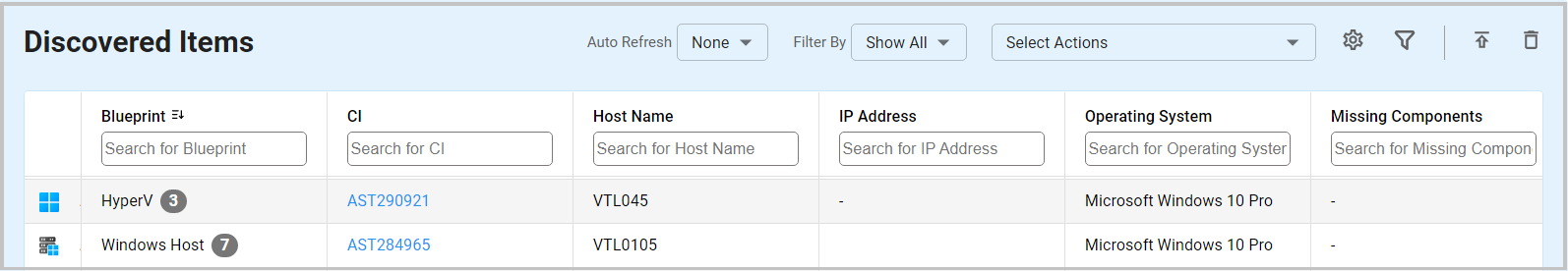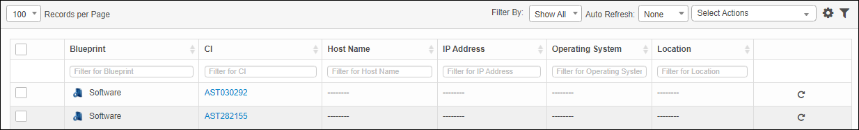 | For a record containing a hyperlink in the CI column, this asset exists in the CMDB. For a record with no hyperlink in the CI column, the asset has not been imported and is considered an "unauthorized asset." |