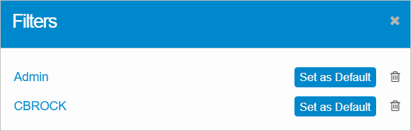 To select the filter, click the filter name (such as Admin or CBROCK). |