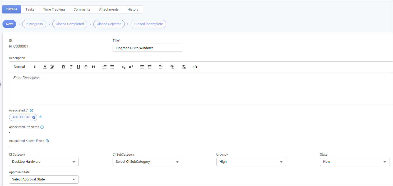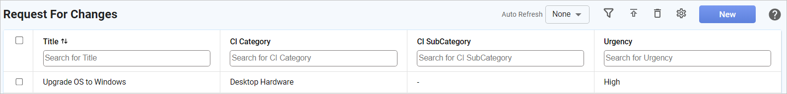 In the navigation pane, select ITSM > Change Management > Request for Changes. The Request for Changes window displays.