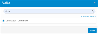 In the Auditor field, click + to add an auditor. The Auditor dialog box displays. |