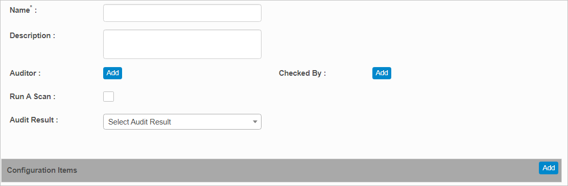 Configuration Items. Click Add, then search for and select the applicable configuration items for this audit process.