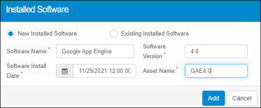 | 3. | Click Add. The Installed Software dialog box displays. |