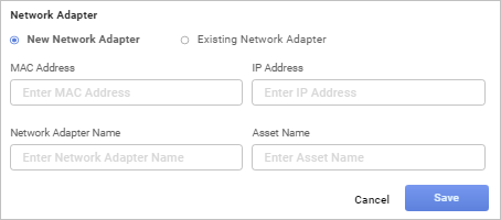 | 3. | Enter the MAC Address, Network Adapter Name, IP Address, and Asset Names. These are all required fields. |