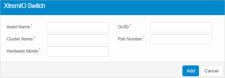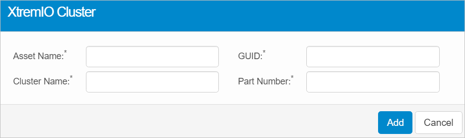 | 1. | Click Add. The XtremIO Cluster dialog box displays. |