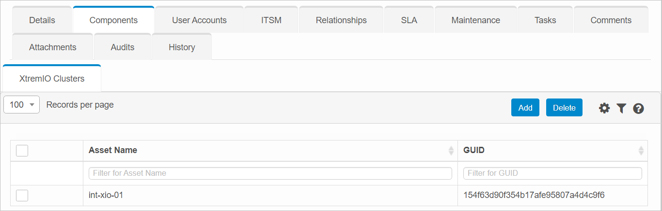 | 1. | While viewing the XtremIO Clusters tab, click Components. |