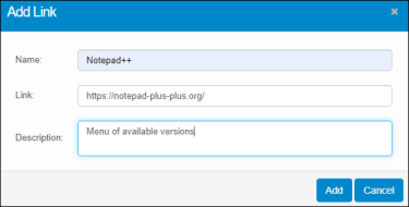 In the Link field, enter the path where the software is located and from where it can be downloaded. |
