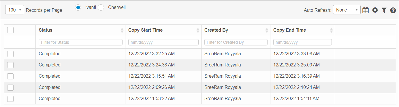 | 1. | In the main window, select ITSM > Configuration Management > Sync Logs. The Sync Logs window displays and shows the details for all moves. |