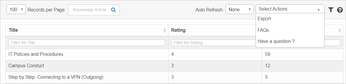 To view the frequently asked questions and corresponding answer, from the Select Actions drop-down list, choose FAQs. The FAQs window displays a list of the most common questions. Refer to FAQs.